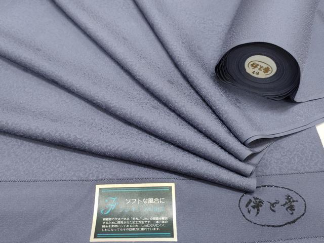 > 平和屋着物▼色無地 反物 着尺 伊と幸 花唐草地紋 薄鼠色 逸品 未使用 DABC4363zy