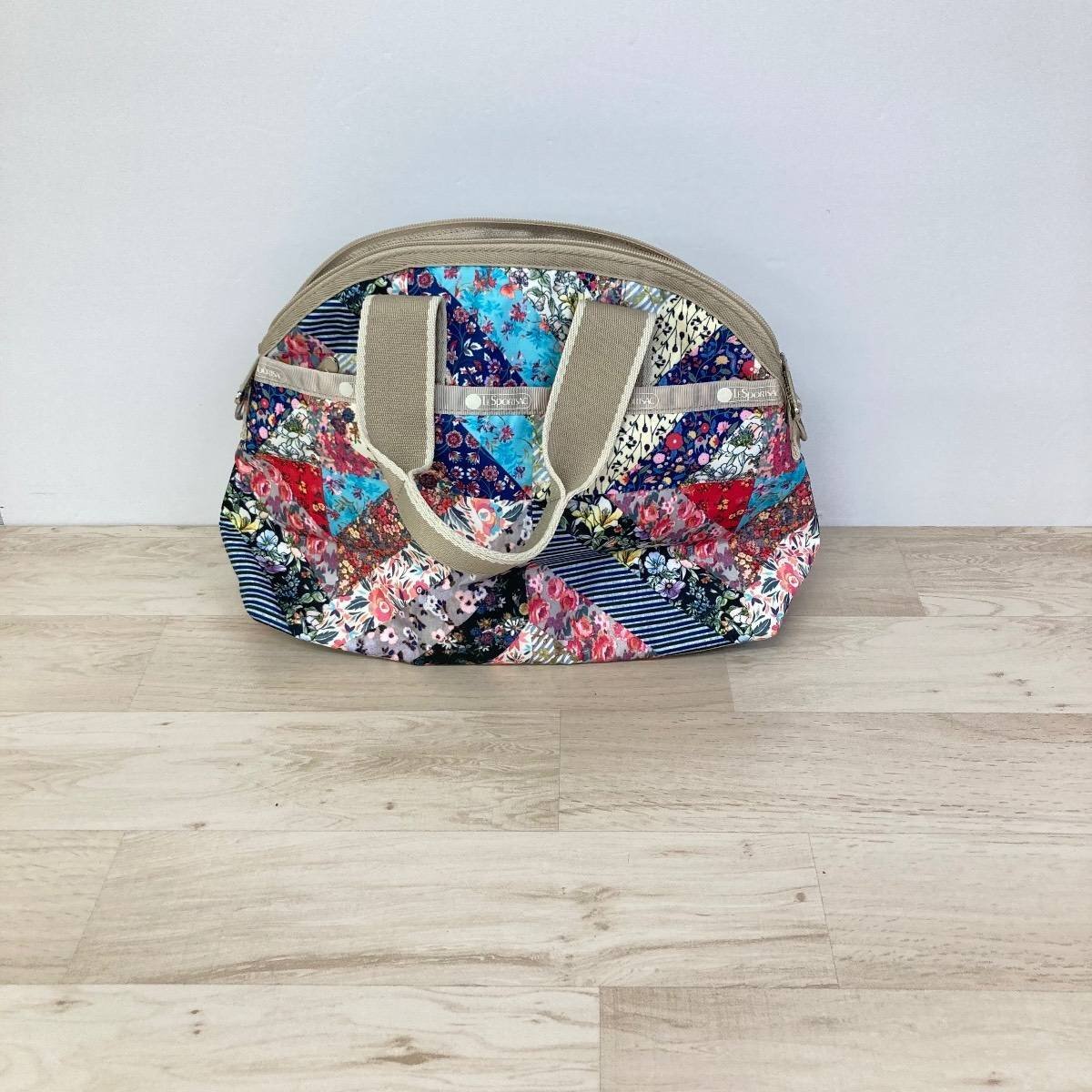 - 美品 LESPORTSAC レスポートサック ハンドバッグ 花柄 パッチワーク調 マルチカラー レディース ボストンバッグ/手提げカバン[OC02450]