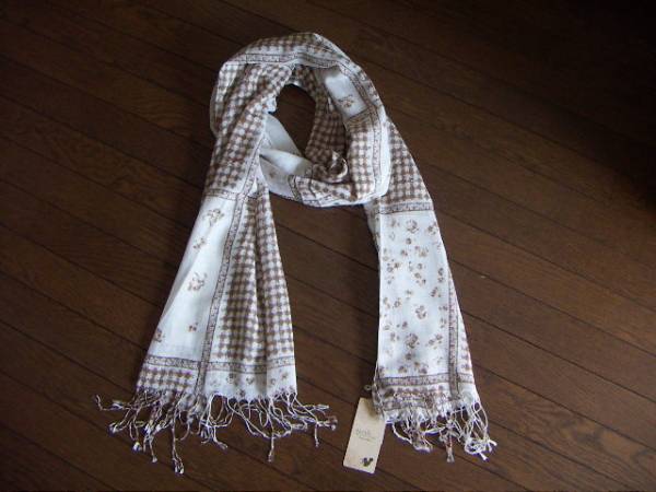 > 即決★新品♪アースミュージック&エコロジー earth music & ecology パッチワークプリント ストール ベージュ