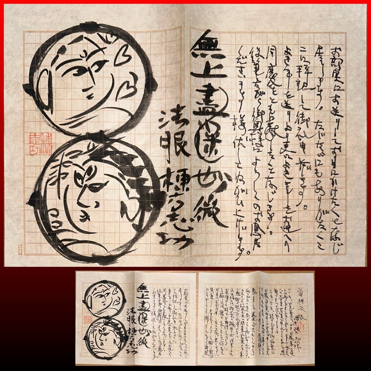 - 肉筆保証 ◆ 棟方志功 ◆ 墨画 墨絵 直筆 真作保証 書簡 手紙 倭画 円窓妃図 金沢資産家所蔵品 落款 手書き 永田耕衣に宛てた手紙