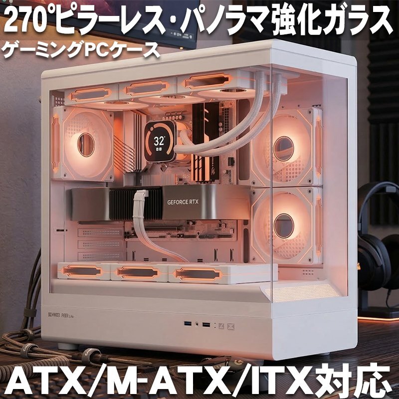 - 1円 デスクトップ ケース デスクトップケース PCケース ゲーミングPC 270° ピラーレス パノラマ 自作PC ATX MicroATX Mini-ITX PC-03WH