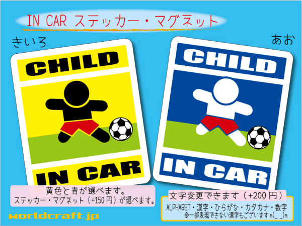 > ■CHILD IN CAR ステッカー サッカー バージョン!■子ども乗ってます 車に ステッカー/マグネット選択可能☆オリジナル かわいい