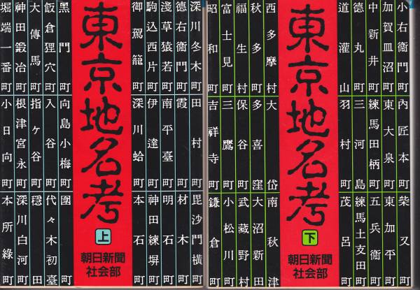 - 東京地名考 (上・下) (朝日文庫) 朝日新聞社会部 1986