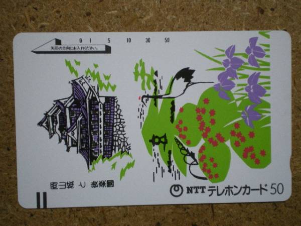 - u14-275・タンチョウ 鶴 岡山城 お城 テレカ