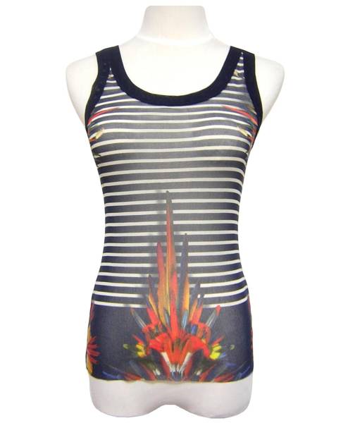> 新品 Jean Paul GAULTIER ジャンポール・ゴルチエ SOLEIL イタリア製 フェザー柄 ボーダー チュールタンクトップ