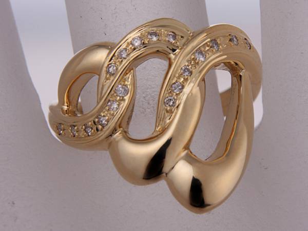 - ke7010◆K18製ダイア入りワイドリング 13.5号 磨き済