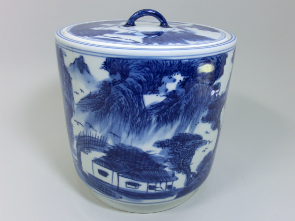 - 水指■青華山水 染付 中国 景徳鎮 古玩 お茶道具 茶器 中国名窯 骨董品 古美術■