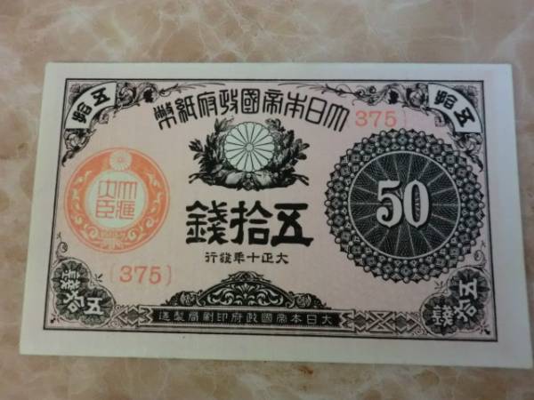 - ★ 大正小額紙幣50銭 大正10年 上美品 ★ No.261
