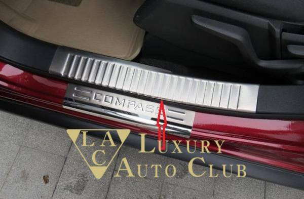 > 11UP ジープ コンパス スカッフプレート ドアシル エントランス 簡単装着 アルミヘアライン仕上げ ステンレス製 内装カスタム