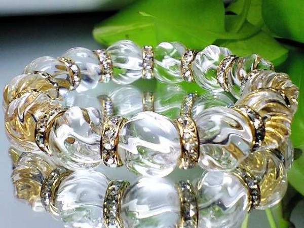 - 人気綺麗水晶トルネード彫水晶14ミリ 金ロンデル