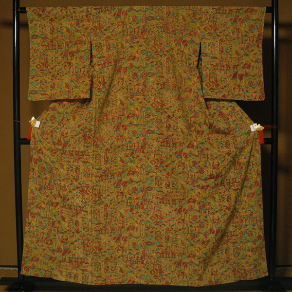 - 正絹 エジプト更紗 袖丈長め 小紋 美品 -単衣-