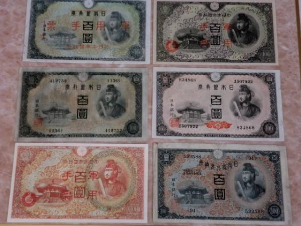 - ★ 1次100円・2次100円・4次100円・乙号100円・丙号100円・丙号(異式)100円 6枚 ★ No.590