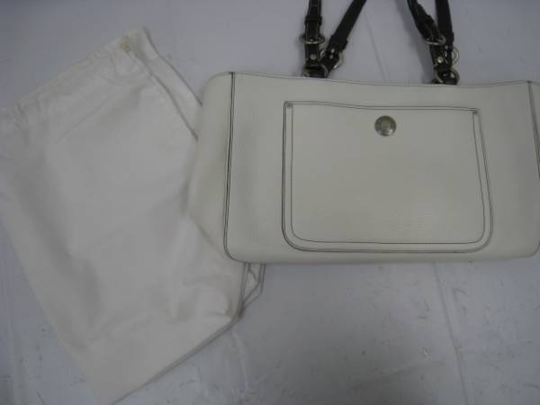 - COACI コーチ ハンド バック 白 茶 シンプル 保存袋 チャーム付