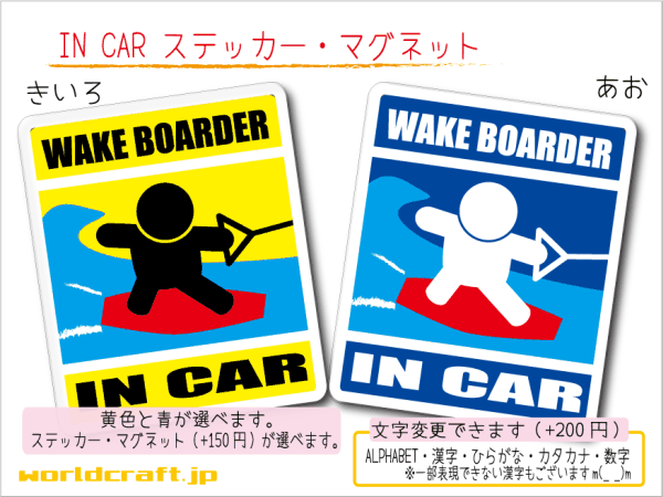 - ■_ IN CARステッカー ウェイクボード !■1枚 色・マグネット選択可■車に乗ってます おもしろ 耐水シール☆サーフィン 海_ot