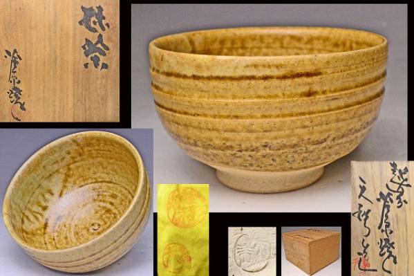 - 久世天声 (武助) ★ 芦原焼 ★ 黄瀬戸風茶碗 ★ 共箱共布 ★ 茶道具 ★