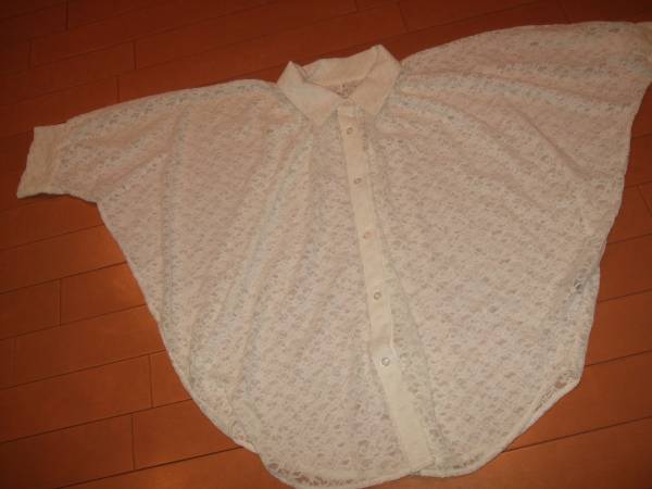 - 新品タグ即決○レース素材変形デザインシャツトップス○M