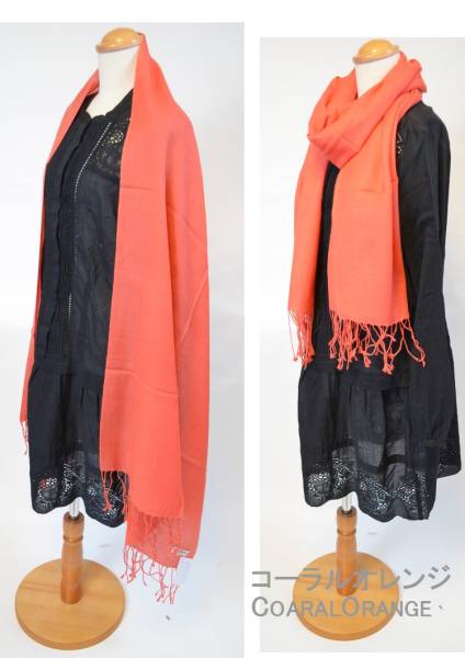 - ☆パシュミナ 大判パシュミナストール☆コーラルオレンジ①