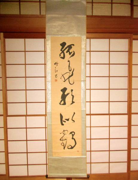 > 掛軸 古句? 古い 落款 漢字 筆書き 縦195.5㎝ 横41㎝ 270g 中国? 旧い ダイナミックな書体 木製箱入 送料無料 底値