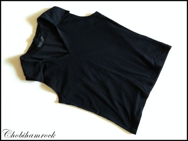 - ルーニィLOUNIE綿スキッパーカットソー袖無し黒薄手