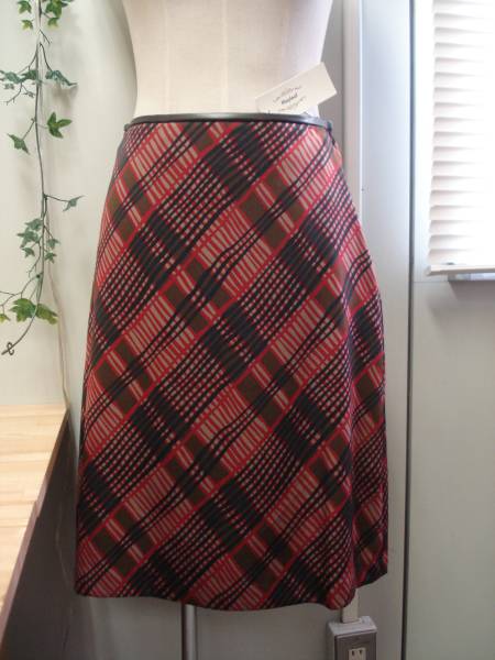 - 新品タグ付◆Mayleaf◆斜めチェック柄 台形スカート レッド 9号