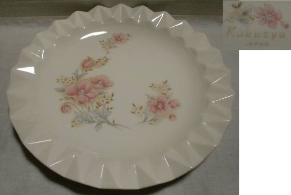 - ★Kakuzyu JAPAN 綺麗 花柄 色絵 大皿 盛皿 プレート 径32cm 食器 陶器 レトロ