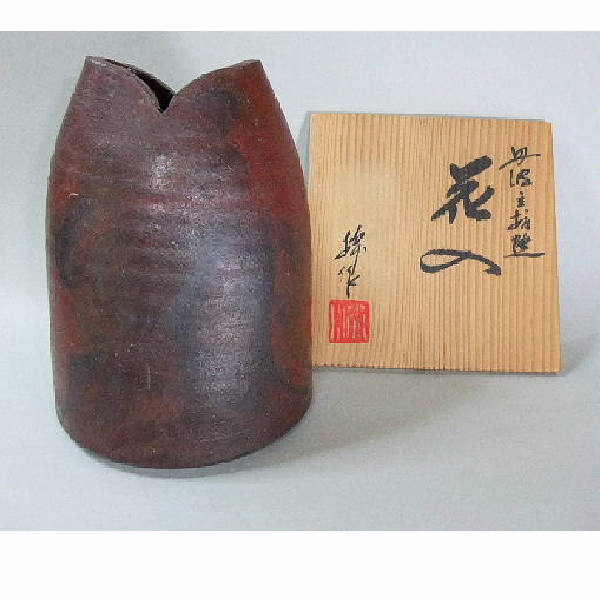 - 【睦】丹波 立杭焼「市野 勝」陶勝窯 焼き締 花入 未使用 共箱■