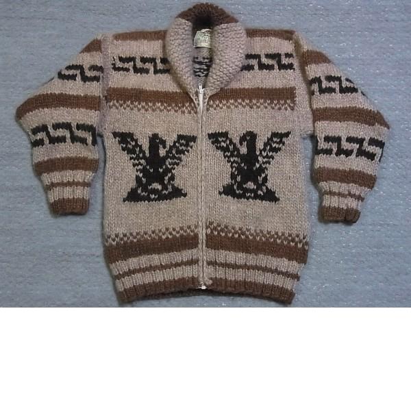 - カウチンセーター・カーディガン カナダ ワシ柄 茶 ジップアップ Turtle S位