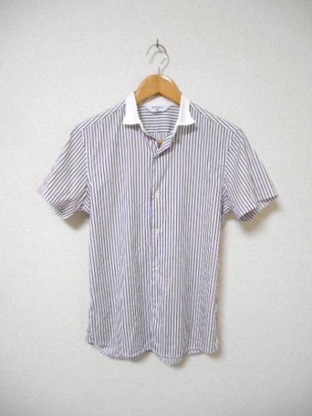 - □EDIFICE/エディフィス ストライプ 半袖 シャツ/メンズ/白/S