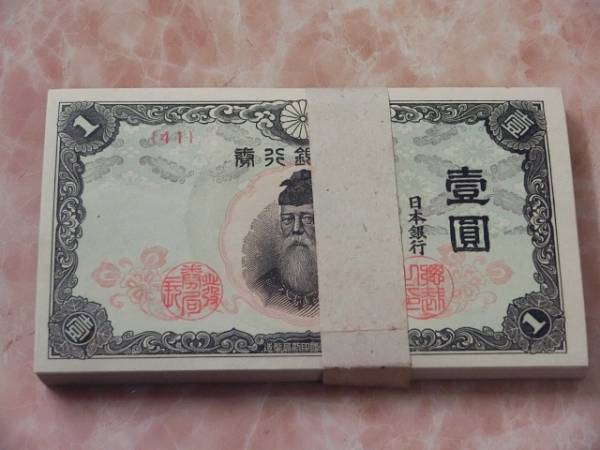 - ★ 改正不換紙幣1円 中央武内1円 前期 1束100枚 未使用 ★ No.1