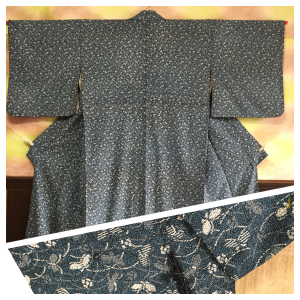 - [小紋着物]正絹/身丈145cm/袷/アンティーク/ 蝶/リメイク