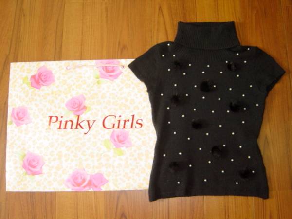 - ◆新品ピンキーガールズ◆ファー ボンボン タートル半袖ニット黒