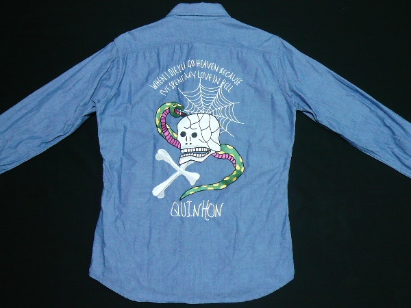 - 美品[STOOGE&CO]長袖スカル刺繍シャンブレーシャツS(36)ブルー