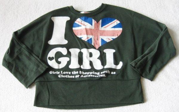 > 110㎝ Sun Memory ドルマン袖 長袖 カットソー ハート柄 深緑