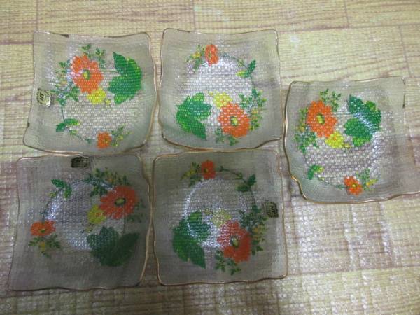 - ◆アンティーク プレスガラス皿 花 NT 5皿セット