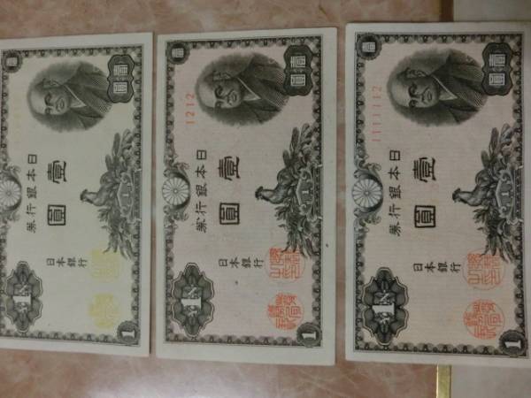 - ★ 日本銀行券A号1円 二宮1円 3枚 ★ No.10