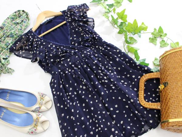 - ◆INGNI イング◆ハートドット カシュクールワンピース♪M 紺