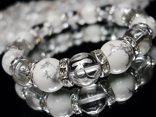 - 十二支守り本尊梵字水晶/ホワイトターコイズ12ミリ天然石数珠