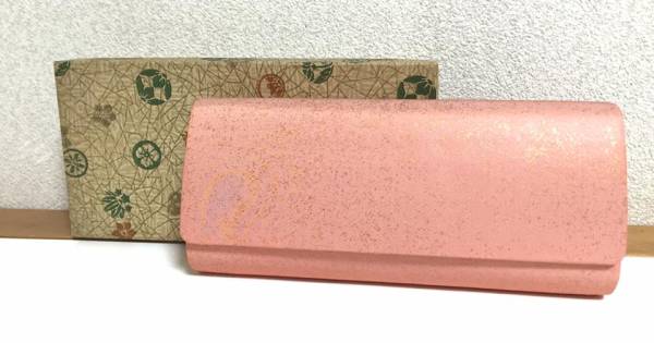 - 美品■着物 和装小物 クラッチバック 鞄 ピンク 金 横長 手鏡付 管理1606 B-8