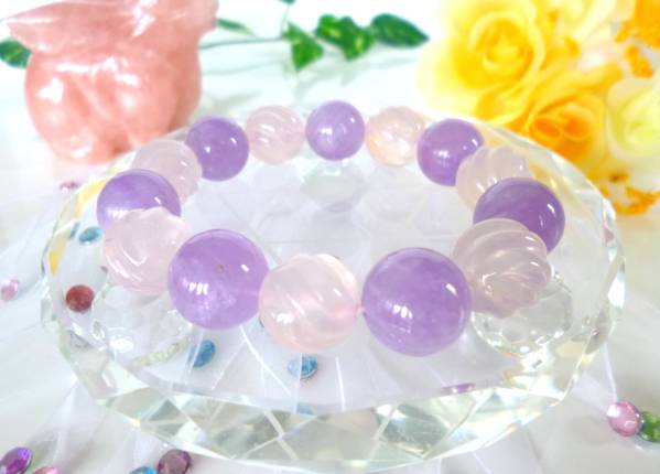 > ☆大珠☆愛の守護石☆心のやすらぎ☆ストレス緩和☆ ☆ラベンダーアメジスト☆マダガスカルローズクォーツ☆ ☆14mm☆ ☆16cm☆