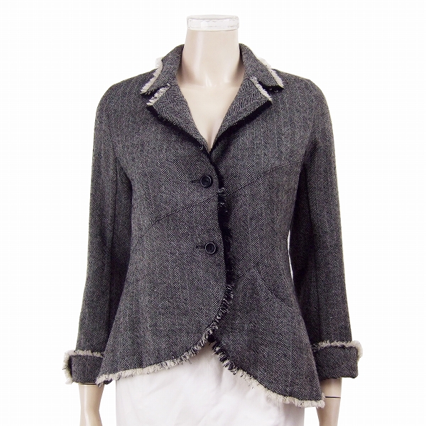 - 美品★スチェッソ*SUTSeso*フリンジ&アシメトリー*極柔ウール*薄手しなやかジャケット*40(Lサイズ.11号)