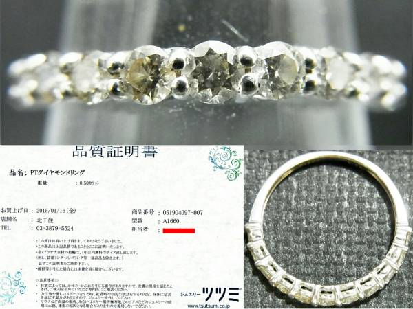 > ジュエリーツツミ0.5ctダイヤモンドリング8号プラチナPT900ハーフエタニティ0.50ctダイヤ一文字プラチナリング11P指輪ピンキーTSUTSUMI