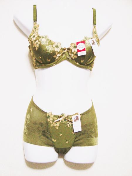 - ☆P106おしゃれな花柄♪ブラ&ショ-ツペア(カ-キ)C70☆