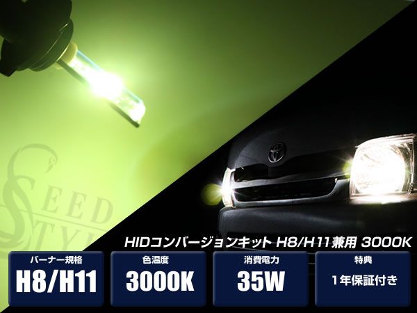 - H11 3000K バーナー 超薄型・軽量バラスト HIDキット 1年保証付