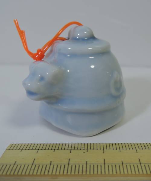 - G09■昭和レトロ 陶器製風鈴 茶釜 青■未使用