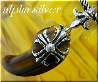 - シルバー925銀の天然石 勾玉タイガーアイ 十字架リバーシブル ペンダント