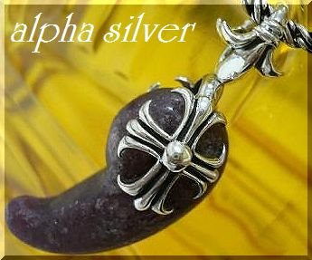 - シルバー925銀の天然石 勾玉ルビー 十字架クロス リバーシブル ペンダント