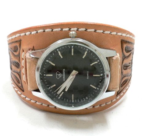 - 牛革カービング アラベスク レザー ブレス ウォッチ/ヌメ/コンチョ無タイプ
