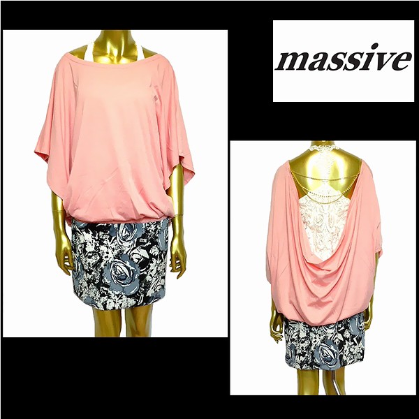 - 新品 タグ付き AC2101 背中開き バラ柄 ミニワンピ ローズ柄 M ピンク ゆったり袖 ワンピース
