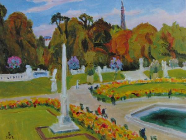 - 鈴木 良三 、リュクサンブール公園、希少な額装用画集より、新品高級額、額装付、状態良好