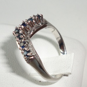 - 送料無料 pt900サファイア7石V字リングサイズ9号used質屋出品